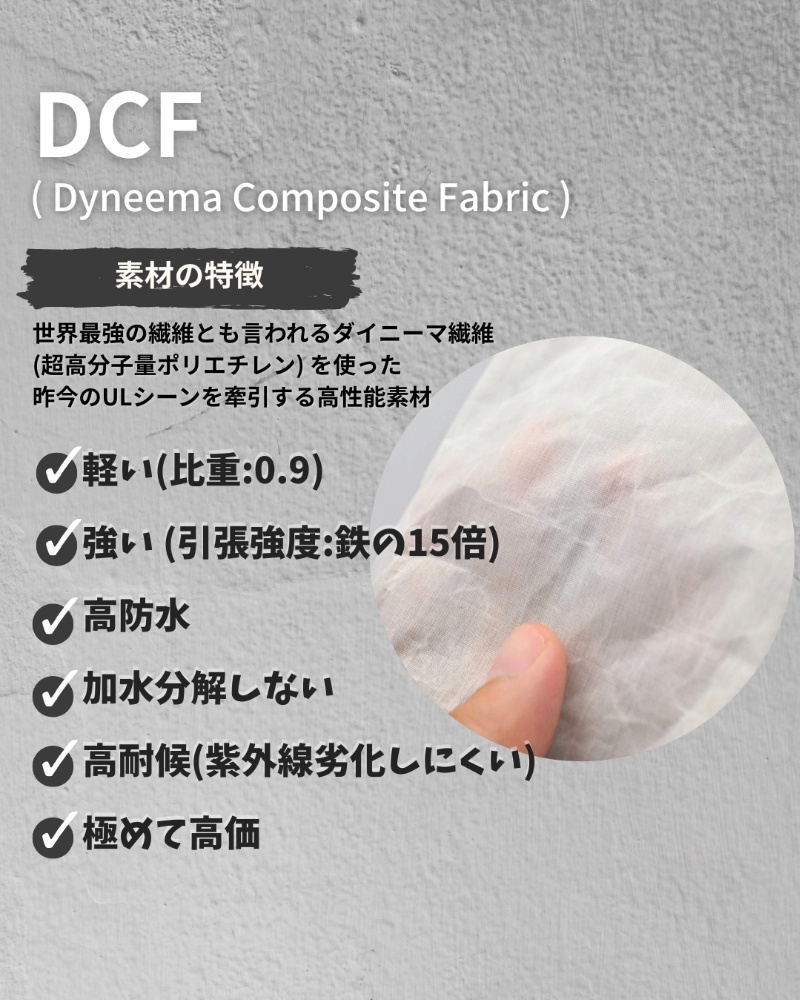 メインファブリックにはDCF(Dyneema®Composite Fabric)